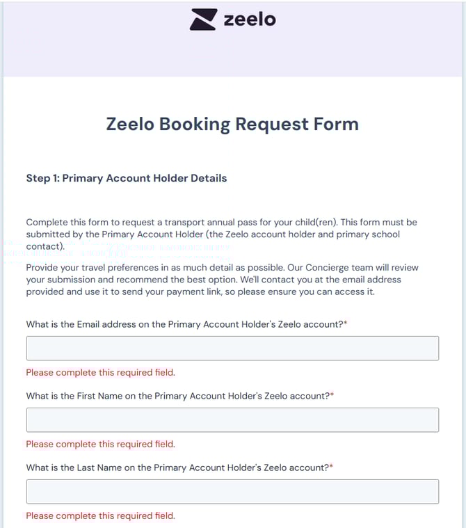When completing the form, please ensure the details match those on your Zeelo account (e.g. name, email address, and phone number of the Primary Account Holder).
