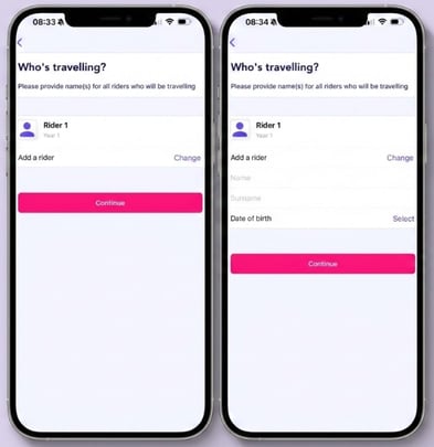 Please see the image below for guidance. You will be prompted to select “Add a rider” and enter the child’s first name, surname, and date of birth.