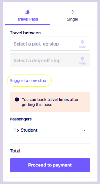 If the functionality to request stops has been activated by your organisation or school, you will see a button which says "Request new pick-up". Please tap this button and fill out the form. See image below for guidance.
